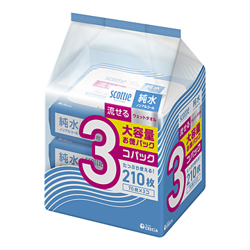 スコッティ 流せるウェットタオル 純水 ノンアルコール 70枚 3コパック