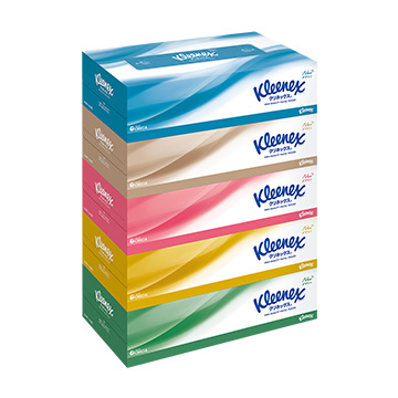 - 「クリネックス ティシュー 5箱パック・長持ち 8ロール」は、現行のデザインを踏襲しつつ、カラートーンをアースカラー(ネイチャーカラー)に変更しました。