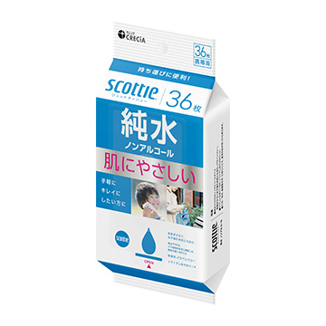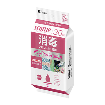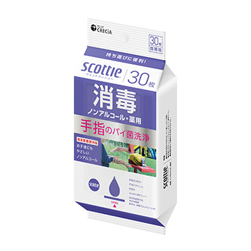 - 「スコッティ ウェットティシュー 純水」から携帯に便利なサイズをラインアップ追加し、「消毒」タイプは、ボトルタイプと連携したデザイン・カラーリングにリニューアルしました。